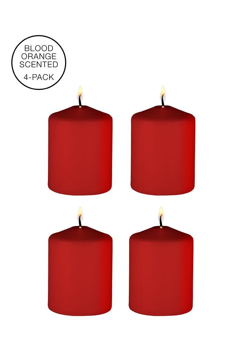 4 Bougies Basse Température parfum Pécheresse – Orange sanguine (3,5 x 4,2 cm), par le spécialiste du BDSM Ouch!