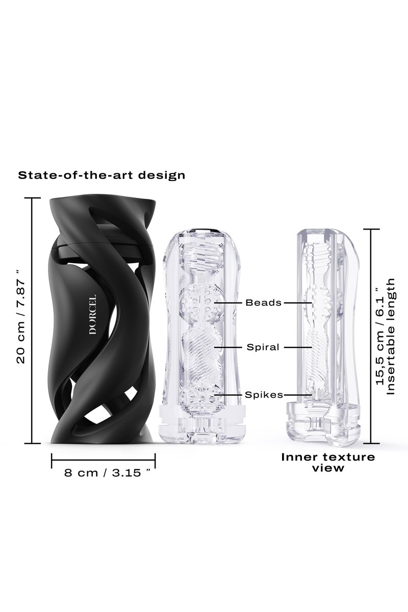 Masturbateur manuel avec gaine transparente et boitier avant-gardiste noir, par Dorcel !