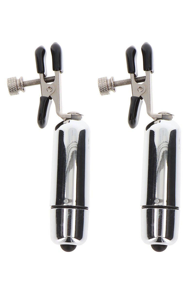 2 pinces vibrantes (10 vitesses de vibration) en métal et ABS pour stimuler les tétons.